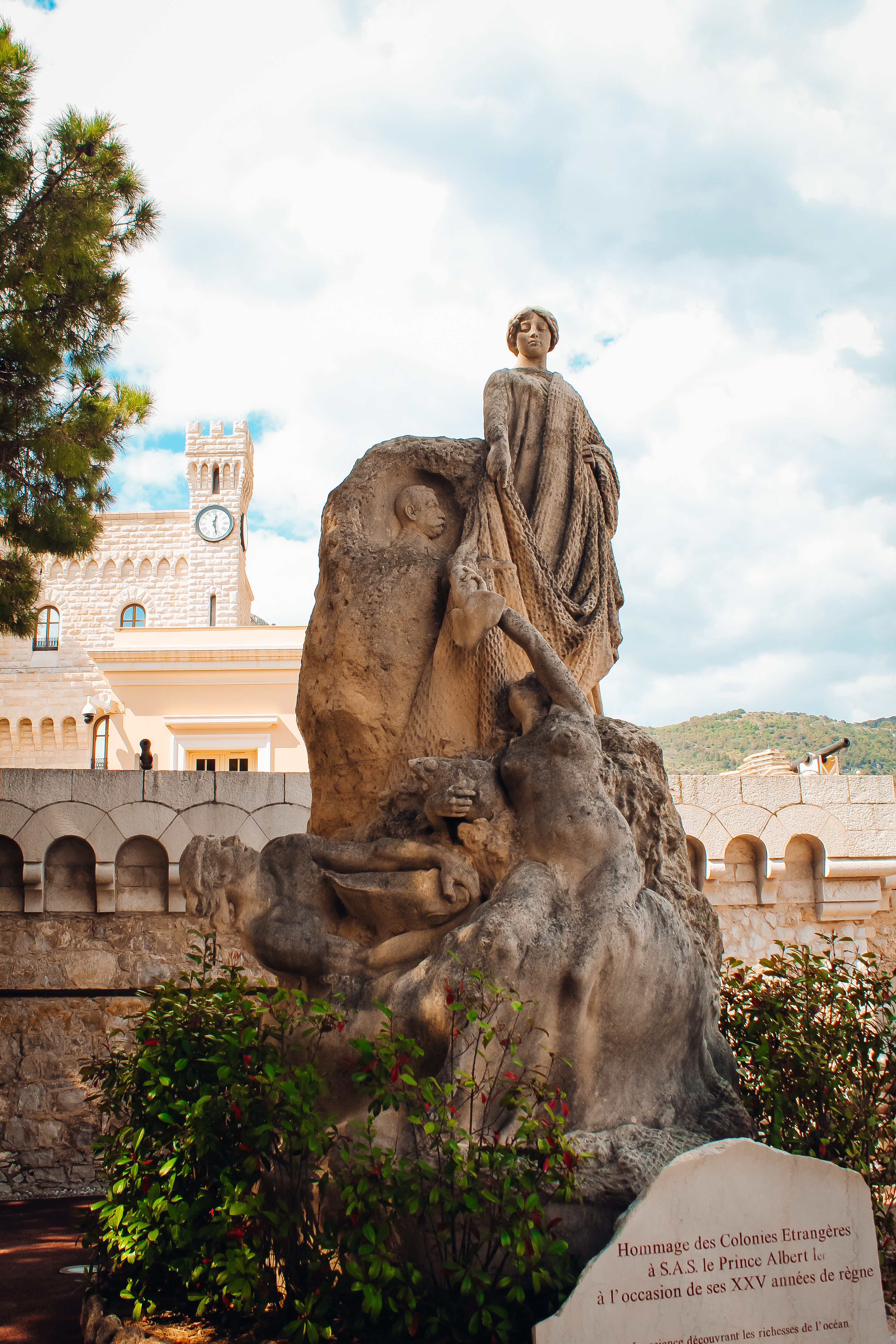 Prince's Palace in Monaco with mountains in the background